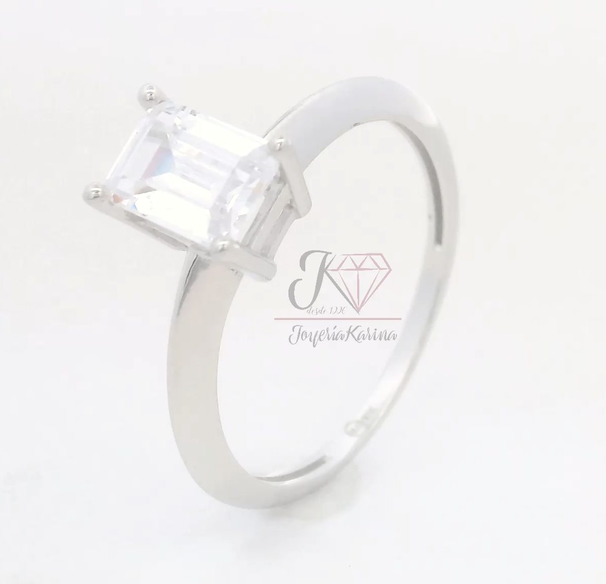 Este anillo solitario en oro blanco de 10k es la definición de elegancia minimalista. Su diseño limpio y pulido resalta una zirconia central de corte esmeralda, una forma rectangular que proyecta sofisticación con cada destello. La montura de cuatro garras permite que la piedra capture la luz desde todos los ángulos, mientras que el brazo liso y delgado equilibra la pieza con un aire moderno y delicado. Ideal para quienes valoran la belleza en lo simple y desean una joya que transmita sutileza y clase.