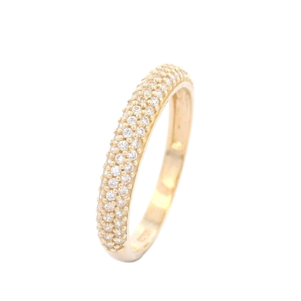 Este anillo sofisticado está fabricado en oro de 10 quilates y destaca por su diseño exclusivo y detallado. La banda del anillo está adornada con múltiples filas de resplandecientes zirconias cúbicas, cuidadosamente engarzadas para maximizar su brillo y atractivo. Cada zirconia refleja la luz de manera espectacular, creando un destello continuo que añade un toque de glamour a cualquier atuendo. Ideal para ocasiones especiales o para uso diario, este anillo combina la elegancia clásica con un toque moderno, convirtiéndose en una pieza imprescindible en cualquier colección de joyería.